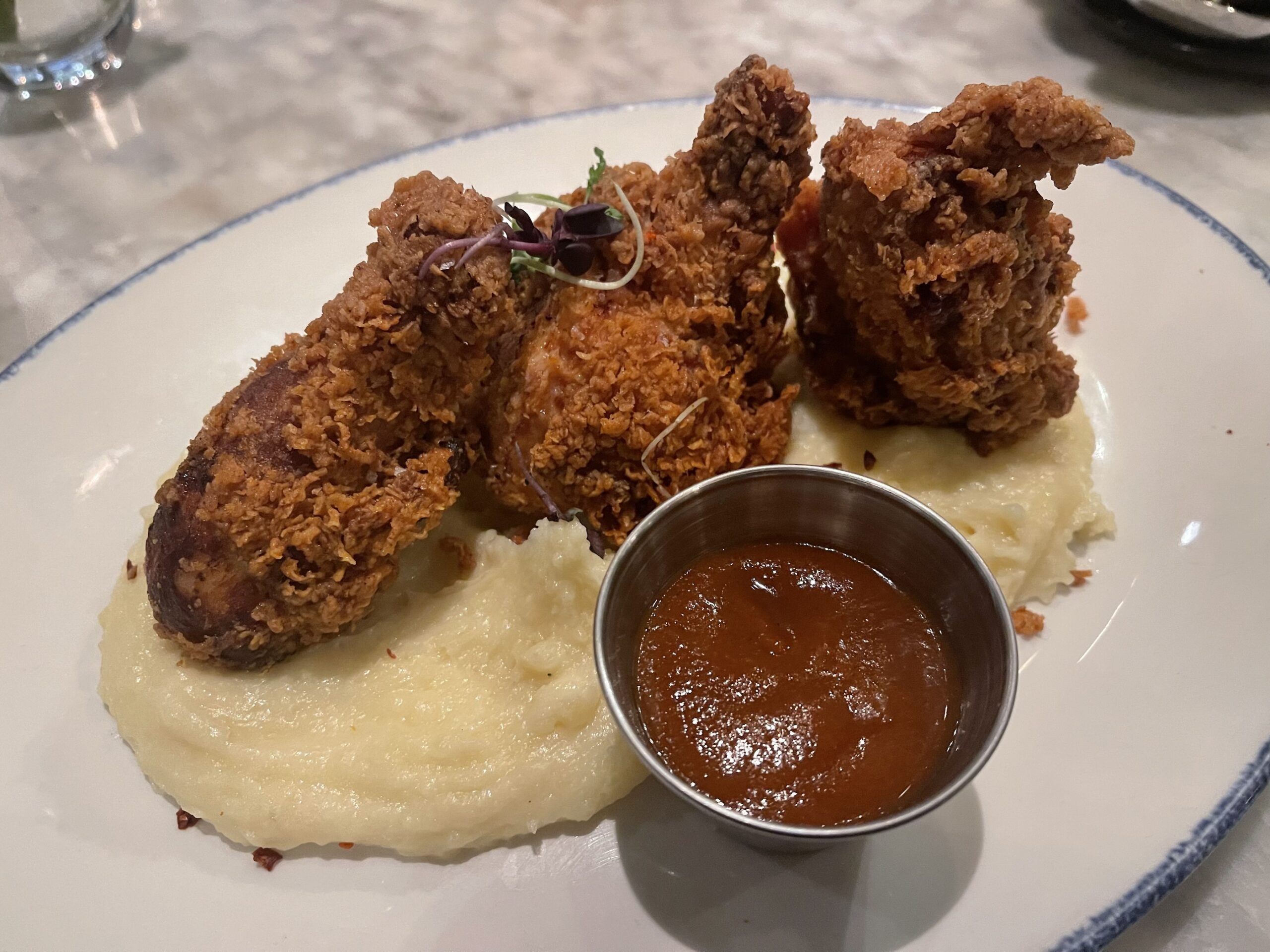 I expected to be “comforted” by the Fried Chicken, but I was shocked to be equally “comforted” by the Butternut Squash Soup, the Hazelnut Green Beans, and the Deviled Eggs. While I continue to maintain that I’m not a “bread guy”, I was absolutely blown away by the Cornbread. 🤯