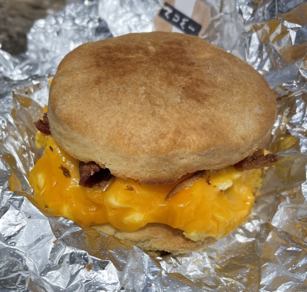 Lest the eggs and smokey bacon feel neglected, they also deserve proper acknowledgment. Their contributions completed this jewel of a breakfast sandwich that literally had me licking the tin foil (outside on a public bench) with a wanton disregard for the scrutiny of others. “Haters gonna hate, and I don’t care as long as I ate!” (Hmmm, I may just use that line again! 🤔 Insert legal language here. “Trademark pending”, so on and so forth, etc.)