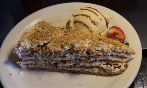From the Borscht, to the Golubtsi, to the Kotleti, to the Shashlik, to the Medovik for dessert, every single dish was delicious.