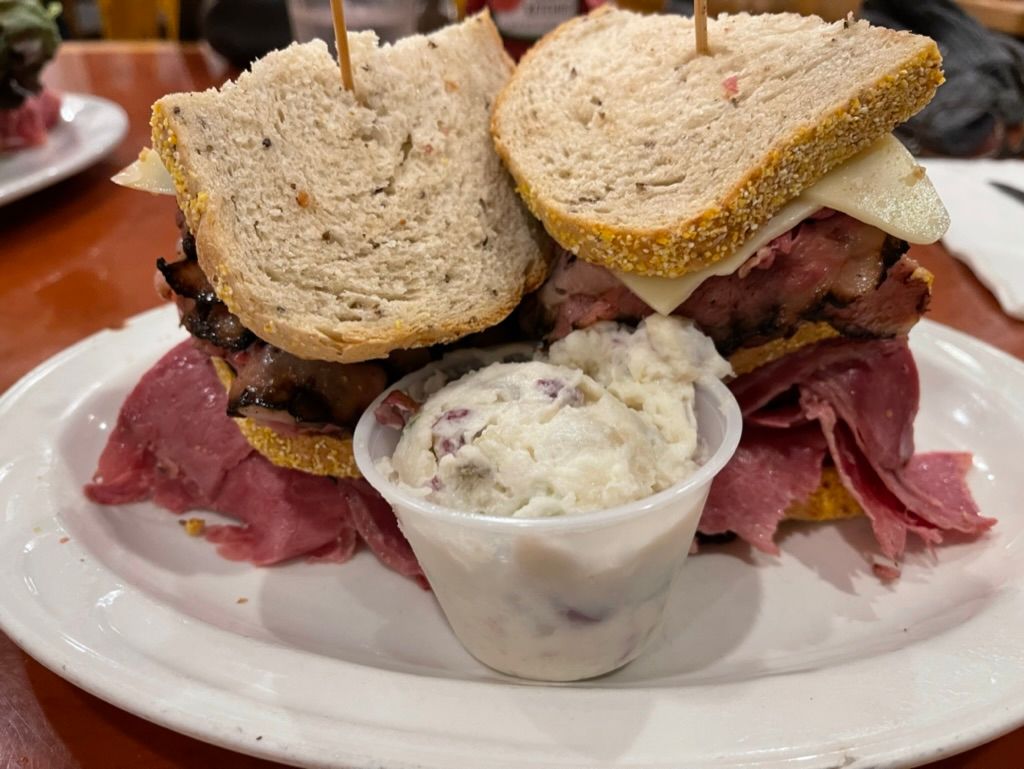 Recommended to us by @teachseuss, we discovered what the opposite of FOMO is because NO ONE gets cheated at Sherman’s Deli & Bakery. The portions are so large here that I nearly put my head down on the table signaling by immediate surrender and defeat when our server merely approached our table with our meals. My only words to him were, “Are you going to pull up a chair and help us eat all this food?” (BTW. I was being absolutely serious.)