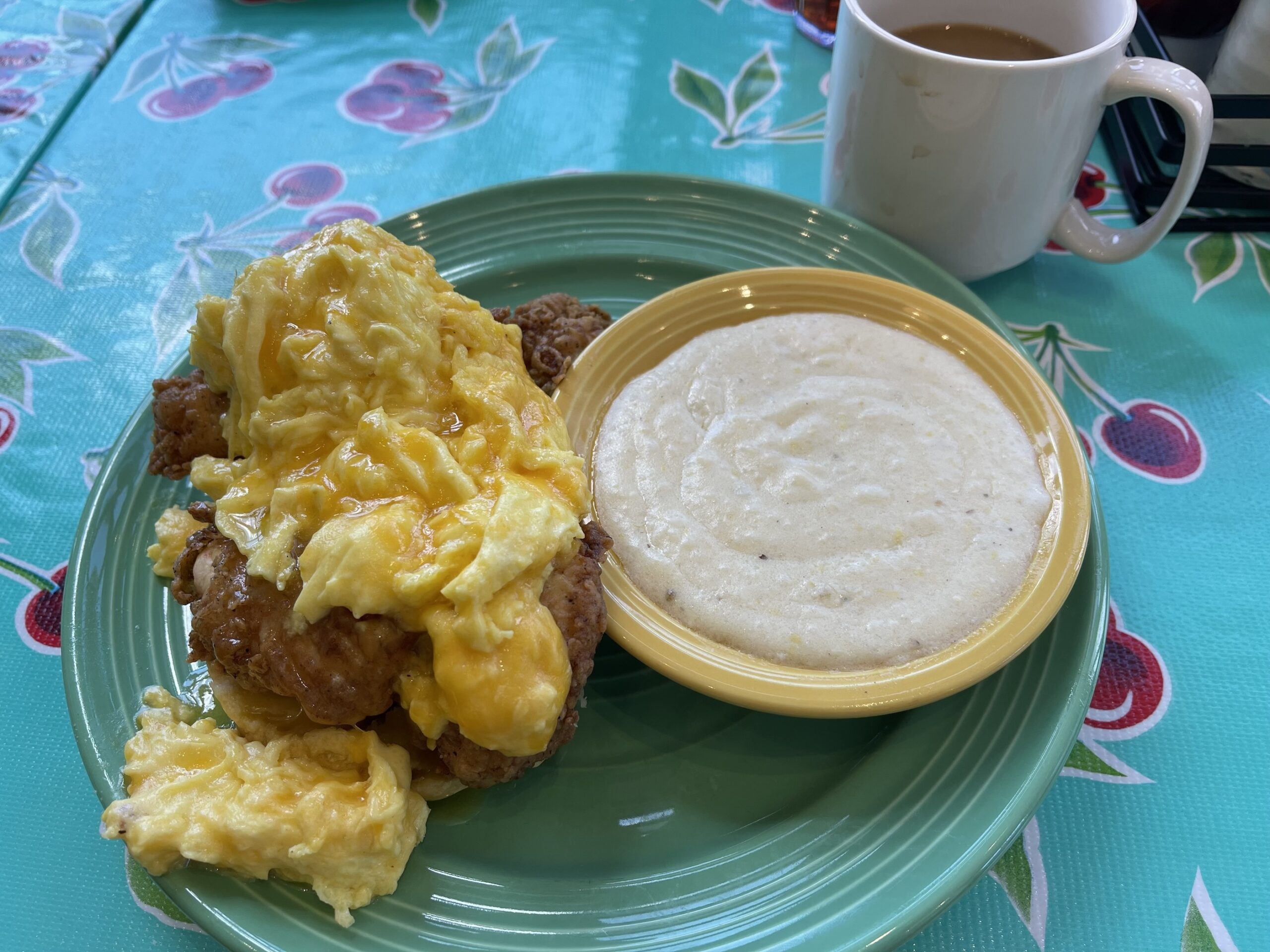 You may also be interested to know that the grits were cheesy, delicious, and sweet; the ingredients they use are from scratch and homemade; and they offer multiple Vegetarian and Vegan options.