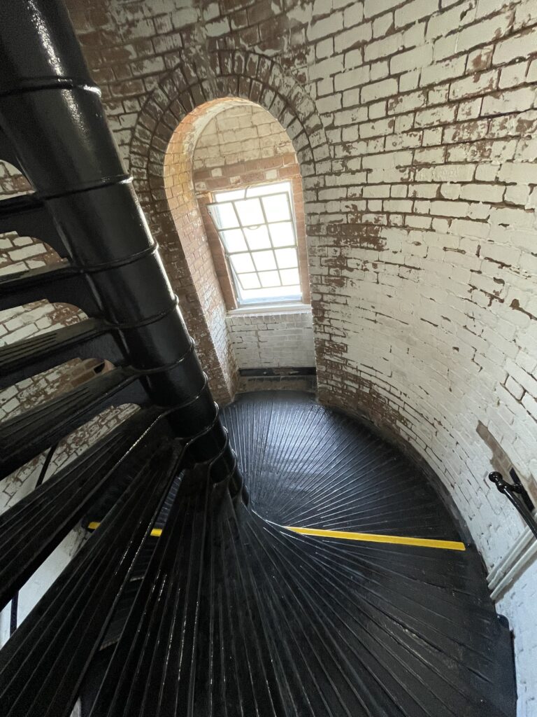 First, you get an up close introduction to the still active Fresnel lens that is maintained by the Coast Guard and intensifies a beam of light equivalent to 70,000 candlepower that is visible a full 18 miles out to sea.